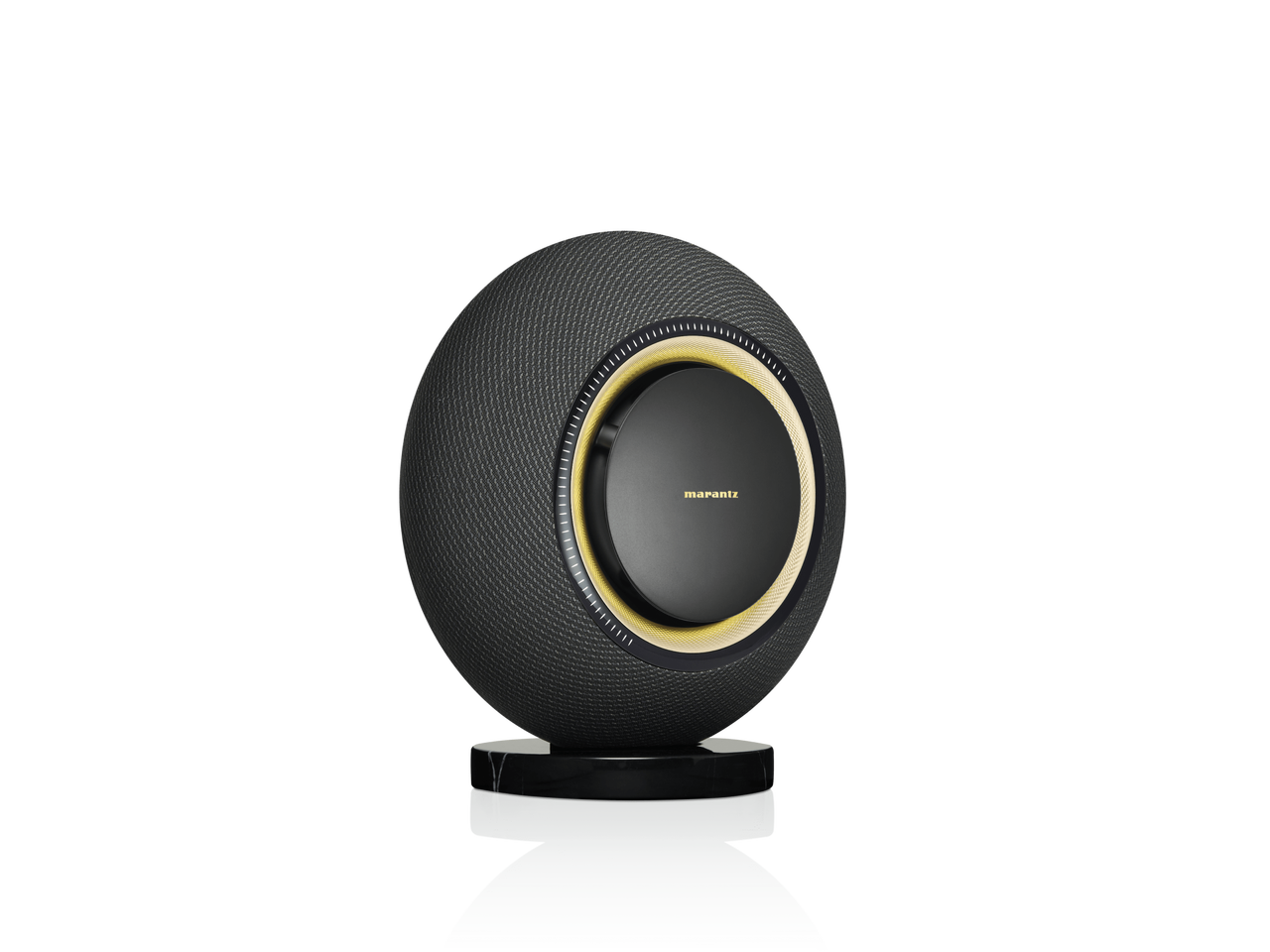 The optional tripod stand, elegantly crafted from American walnut and robust cast iron with a luxurious satin black finish, and designed to achieve the ideal listening height, perfectly complements Marantz Horizon’s luxurious materials.