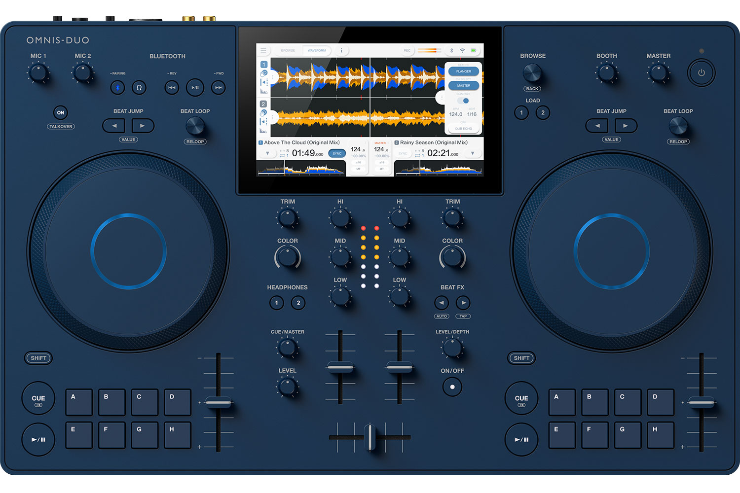 Never disappoint a friend again when they request a song. Instead, invite them to connect their phone to the OMNIS-DUO via Bluetooth function and you can drop the track into your set. Thanks to the system’s Bluetooth Playback function, you’ll have control of the audio on the deck. You can adjust the volume and EQ, apply effects to the sound, change the tempo, use Hot Cues, and scratch, just like you would with tracks loaded from a USB stick or SD card. With the OMNIS-DUO and Bluetooth audio input, you can enjoy collaborating with friends and expand your musical experiences.